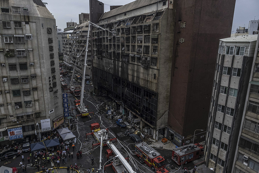 Rescue personnel search for victims in the building Thursday after the fire. The Kaohsiung Fire Department dispatched 31 crews to put out the blaze, which was extinguished around 7:15 a.m. Photo: VCG
