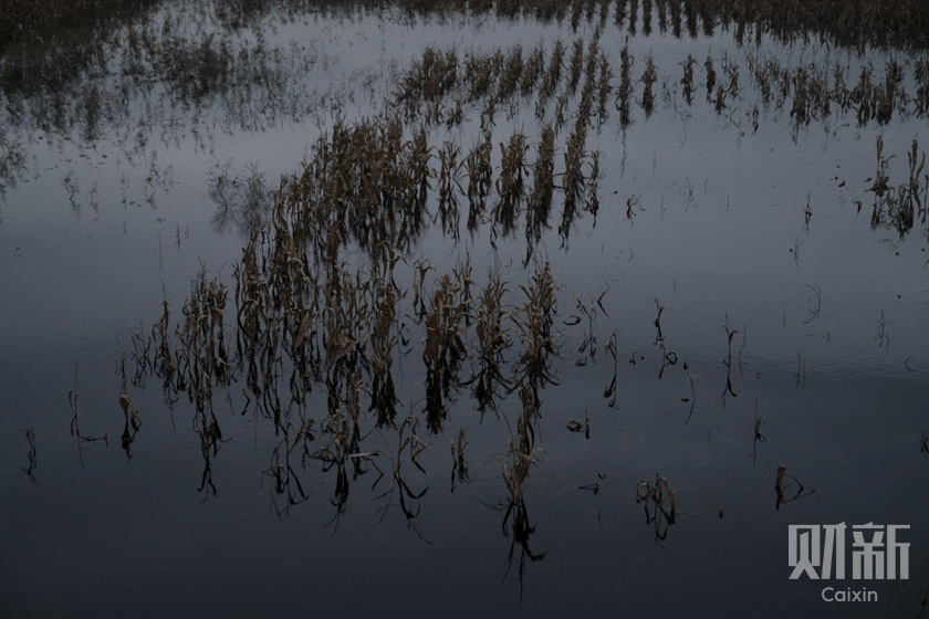 Soaked plants are seen Sunday in the village. Photo: Liang Yingfei/Caixin