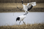 Two red-crowned cranes play near a river in a reserve in Yancheng, East China’s Jiangsu province, on Jan. 31. China has established over 18 natural reserves to protect this endangered bird. Photo: VCG