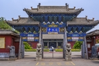 Two painted sculptures flank the entrance of a shrine in Shuanglin Temple. Photo: VCG