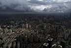 Dark clouds accumulate over Shanghai Saturday due to the peripheral circulation of Typhoon Chanthu. Photo: VCG