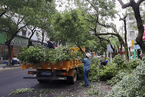 Workers trim branches Sunday on a road in Yuyao city of Ningbo before the approach of Chanthu, to prevent possible circuit damages caused by the typhoon. Photo: VCG
