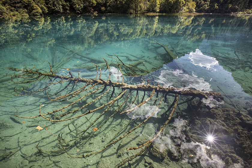Trees stretch on the terraces of Shuzheng Lakes, which measures 13.8 kilometers and is composed of over 40 lakes with varied sizes, in Jiuzhaigou on Monday. Photo: Lyu Guoying/Hongxing News, VCG